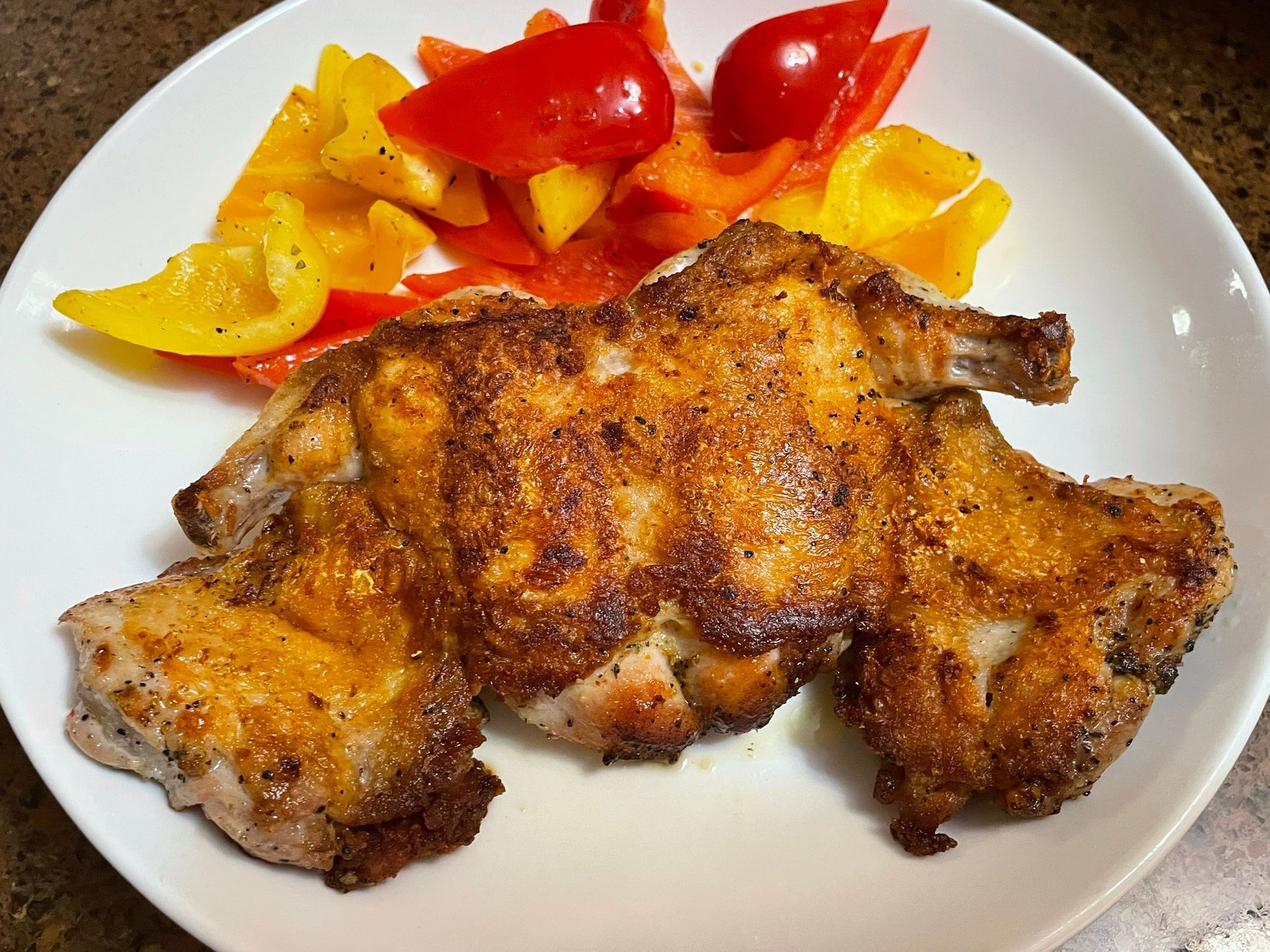 🐓煮法超簡單:Air fry 450F, (每邊8分鐘),先放皮嗰邊向上, 8分鐘後反轉再煮8分鐘,就搞掂,咁易就成為大廚