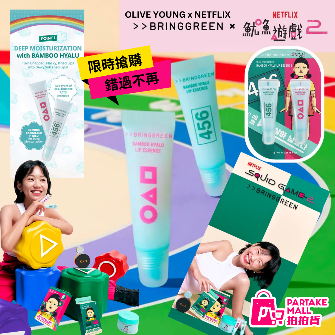 韓國空運 OLIVE YOUNG x NETFLIX 《魷魚遊戲2》限定聯乘 韓國Bring Green竹子透明質酸保濕護唇精華 2支入