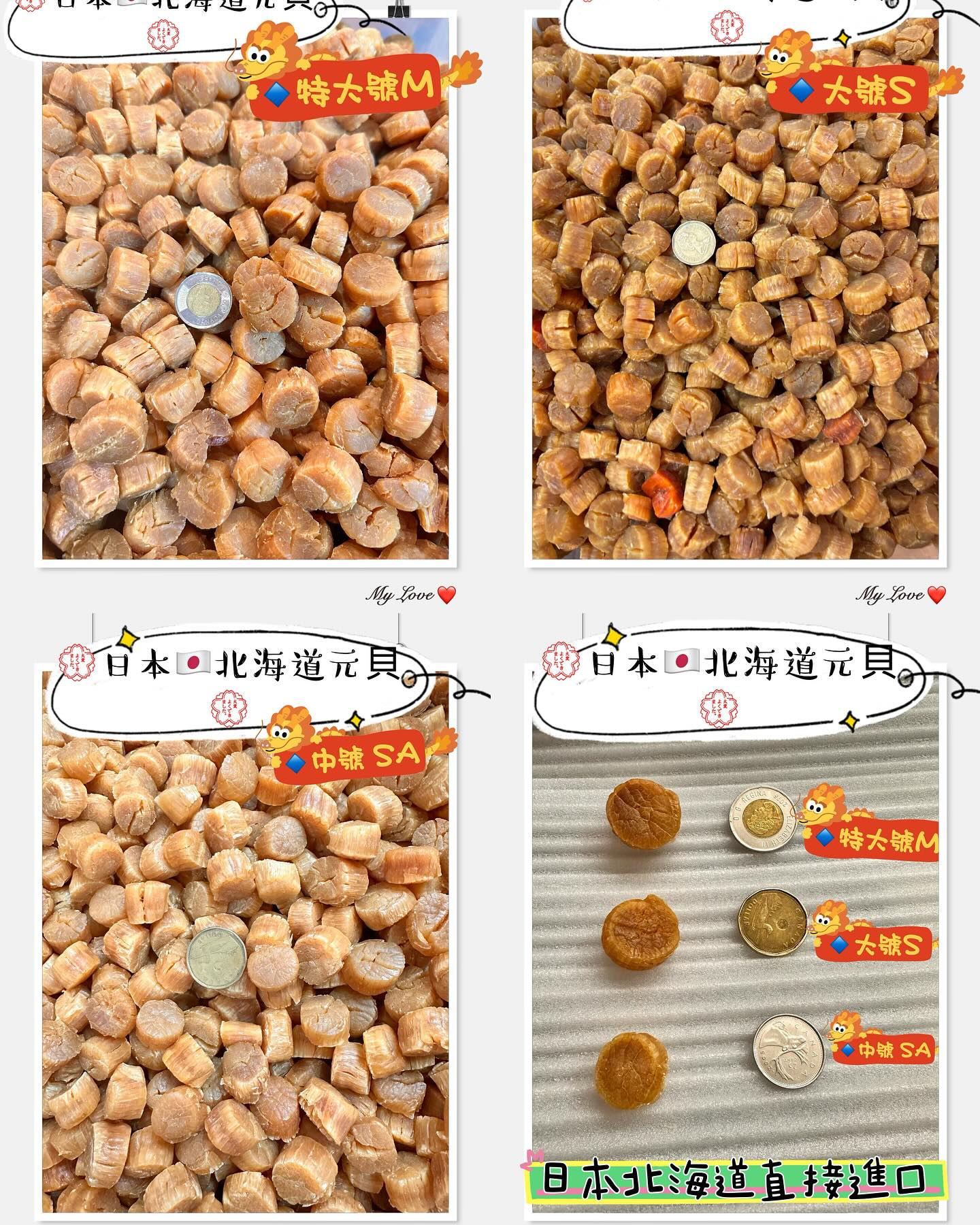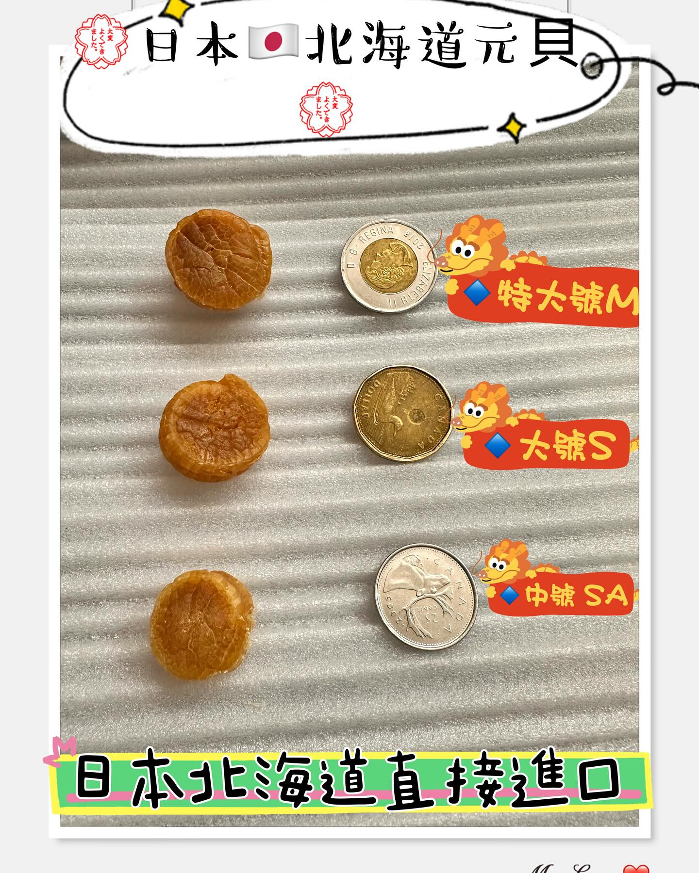 🏆正宗的日本元貝分不同等級,仲有不同size, 而原粒計算,由細至大粒 4S / SAS / SA / S / M / L / LL