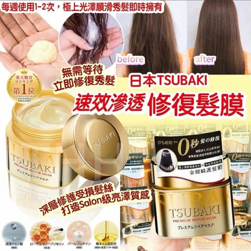 日本 資生堂TSUBAKI 0秒金色瞬間修護髮膜 180g
